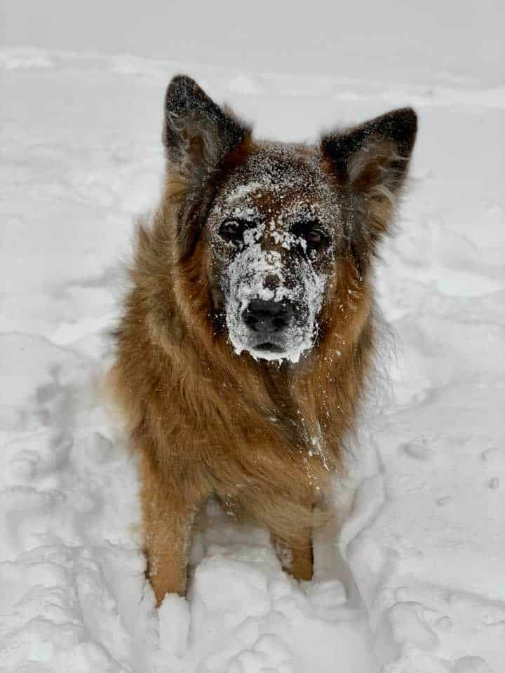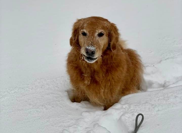 Dogs and other four-legged animals can have fun in the snow but be sure to keep a keen eye on them to prevent them from getting caught in drifting snow or staying outside in the frigid temperatures for too long