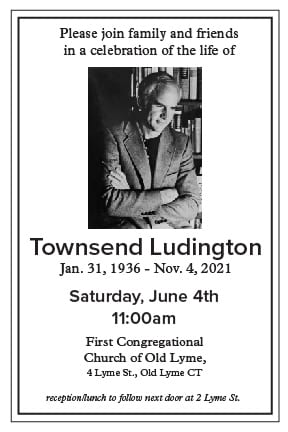 OLD LYME — A Celebration of the Life of Charles Townsend Ludington, Jr. will be held at the First Congregational Church of Old Lyme on Saturday, June 4, at 11 a.m.