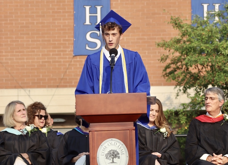 Good evening everyone, and welcome to Lyme-Old Lyme High School’s 2023 graduation! Greetings to the Board of Education, high school faculty, staff, and administration, friends, family, and most importantly, the Class of 2023! I am Alex Olsen, Senior Class President, and it is my honor to welcome all of you to Lyme-Old Lyme High School’s fiftieth graduation!