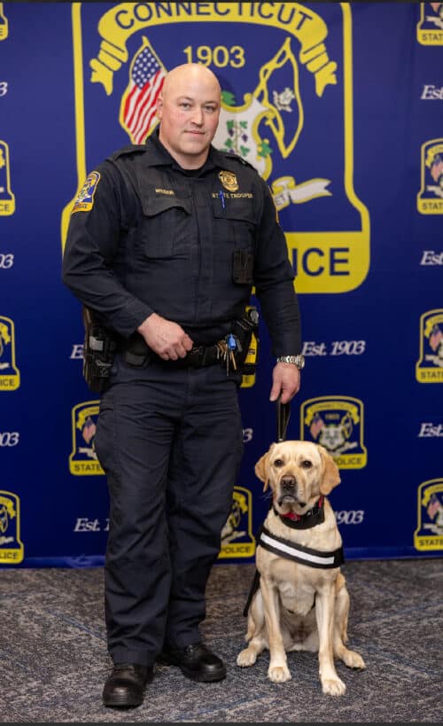 OLD LYME–One of the latest graduates of the Connecticut State Police Comfort K9 program is a Labrador Retriever named Viera who, in four short months, has been there for traumatized children, shell-shocked First Responders, and her own partner, when they most needed a helping paw.