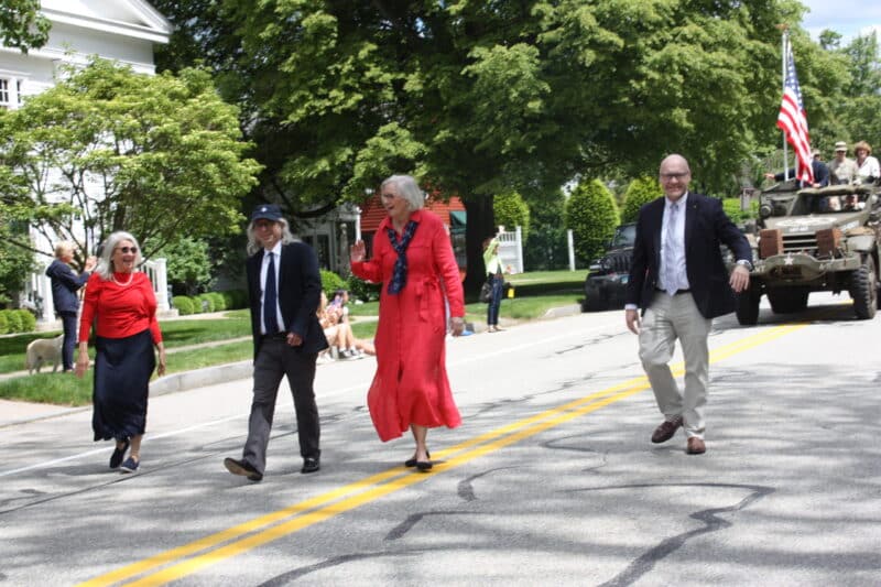 Old Lyme Board of Selectmen members Jude Read (left) and Jim Lampos (second from left) march with First Selectwoman Martha Shoemaker and State Rep. Devin Carney, R-Old Lyme.