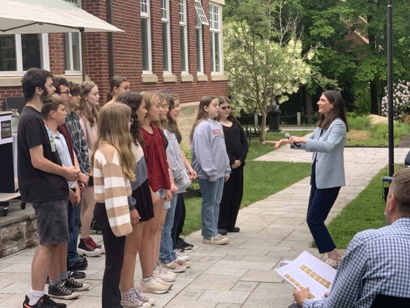 Michelle Dean, curriculum director for the Lyme-Old Lyme Schools, described the five-year collaboration between Witness Stones Old Lyme and the schools as a shared commitment to telling the stories of “those whose voices for far too long have gone unheard.”