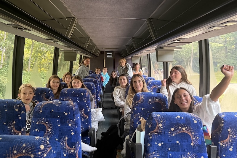 A rousing send-off took place this morning at Lyme-Old Lyme High School as the girls set off in their quest for victory.