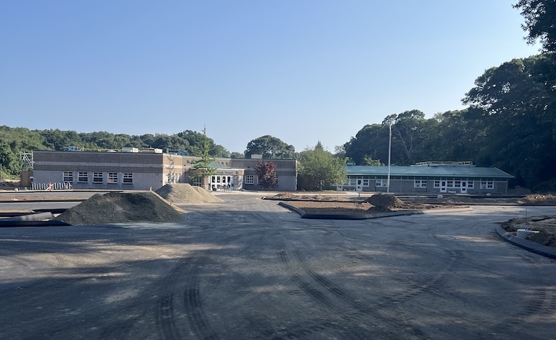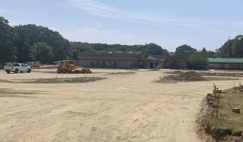 LYME/OLD LYME–UPDATED 8/16 with new photo of driveway (above.) Superintendent of Lyme-Old Lyme Schools Ian Neviaser on Thursday said he’s more confident than ever that schools will reopen on time now that an intensive summertime push is winding down on the $57.5 million renovation project affecting four of the district’s five buildings.