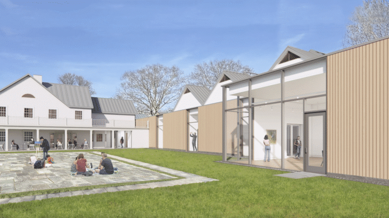 Renderings for the project, which is overseen by Massachusetts-based Oudens Ello Architecture and Stimson Studio landscape designers, show rooms that capitalize on open air designs and expansive windows to bring the outside in. An open air pavilion turns into an enclosed lobby and gift shop described by Torrance as an observation deck with views of the Lieutenant River, apple orchards and the remnants of Childe Hassam’s studio.