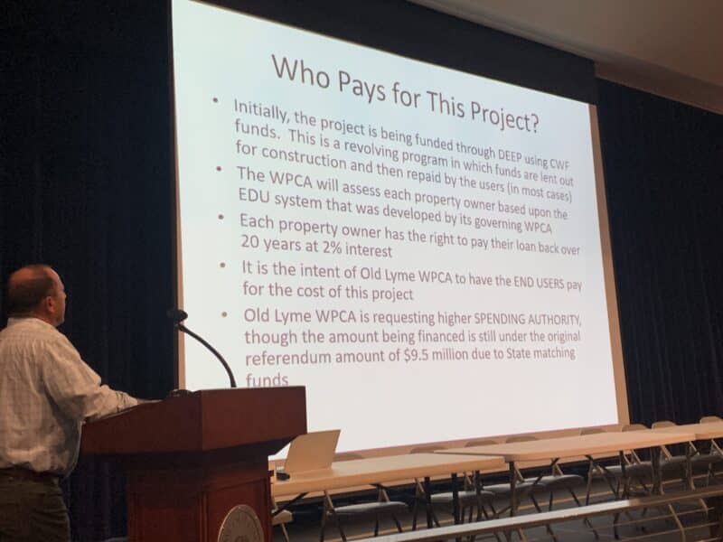 OLD LYME, CT – With a townwide referendum on the $20.5 million Sound View sewer project set for next week, Water Pollution Control Authority (WPCA) Chairman Steve Cinami on Tuesday pushed back on the cost implications for the town as members made another adjustment to the numbers.