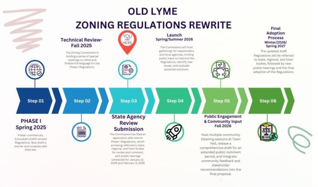 OLD LYME, CT – A comprehensive update to the town’s zoning regulations is entering its second phase as local officials begin seeking broader community input on the guidelines that dictate what can get built, and where, in town.