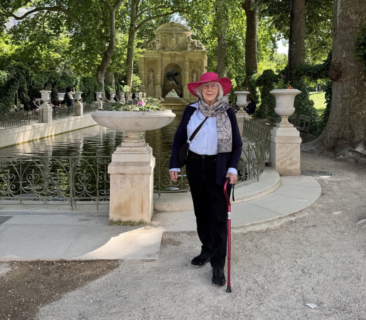 Old Lyme’s Janet Roach, whose work earned an Oscar nomination, enjoyed a moment in the Luxembourg Gardens, Luxembourg, in 2025. Photo courtesy of Roach.