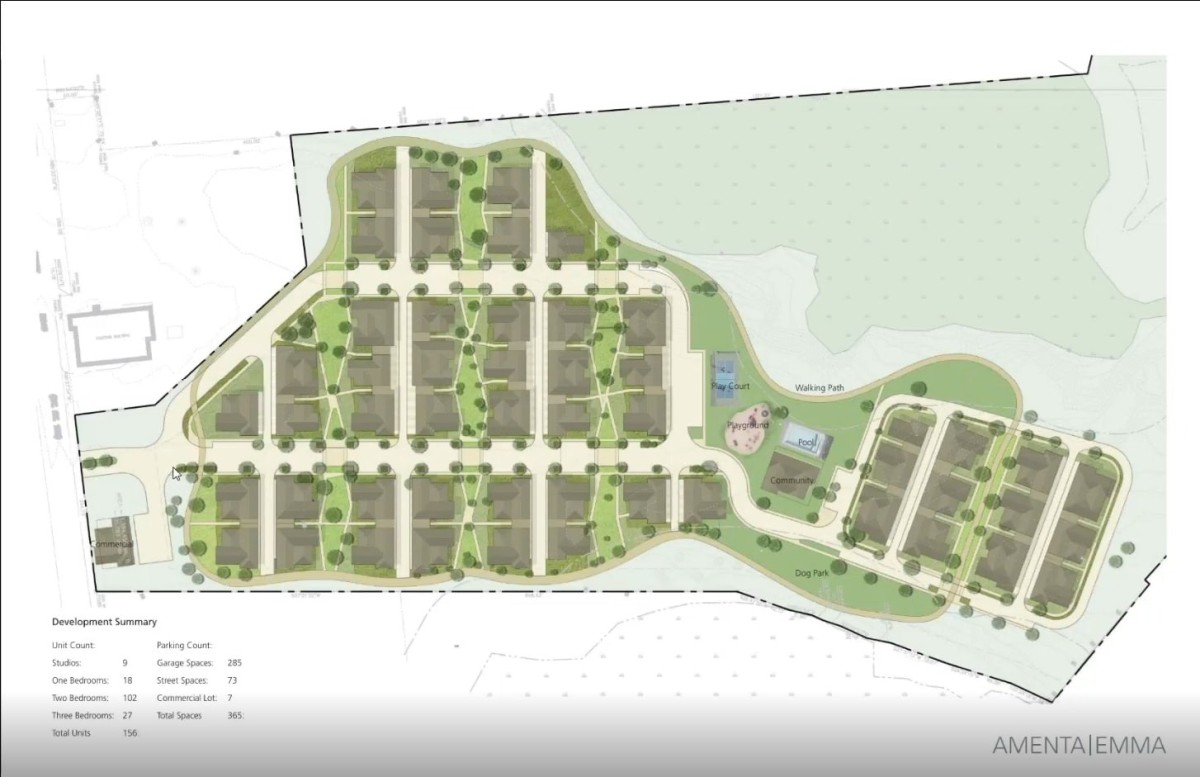 Brown described a vision for “two story homes, front porches, walkable sidewalks, tree lined streets” in a multifamily development designed to resemble a traditional neighborhood. He said amenities would include a clubhouse, pool, playground areas and possibly a dog park.
