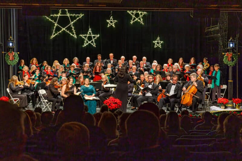 The concert features the Masterworks Chorus and Cappella Orchestra, with soloists Kayla Cook, soprano; Edmound Fitzpatrick, bass/baritone; Brooke Larimer, mezzo-soprano; and Tim Lind, tenor.